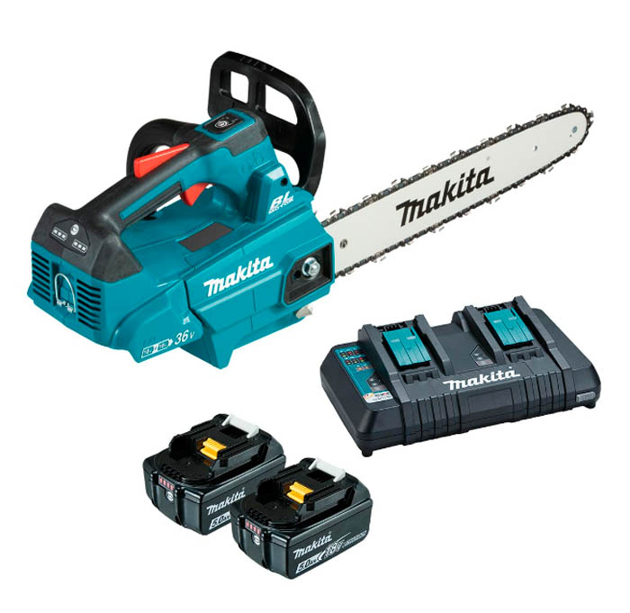 La Motosierra Inalámbrica sin Escobillas (Brushless) de 30 cm (12") de Makita es alimentada por dos baterías de 18V LXT Li-Ion. Ligera para reducir la fatiga del operador e inalámbrica para un mantenimiento reducido; no es necesario cambiar el aceite del motor ni la bujía, limpiar el filtro de aire ni drenar el combustible para su almacenamiento. Lubricación automática de la cadena ajustable con un gran depósito de aceite. Gran puerto de llenado de aceite con ventana de visualización que permite al operador agregar y comprobar fácilmente el nivel de aceite de la barra.