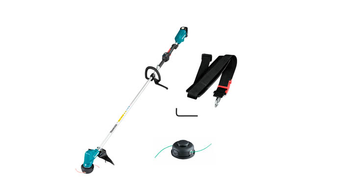Desbrozadora Inalámbrica de 3 Velocidades de 18V LXT BL ADT AFT de Makita, con Mango tipo U (Loop). Mejor maniobrabilidad debido a su diseño ligero. Un protector para cuchilla metálica / cuchilla plástica / cabezal de orilladora. Bloqueo de eje sin herramientas para cambio de cuchilla plástica.