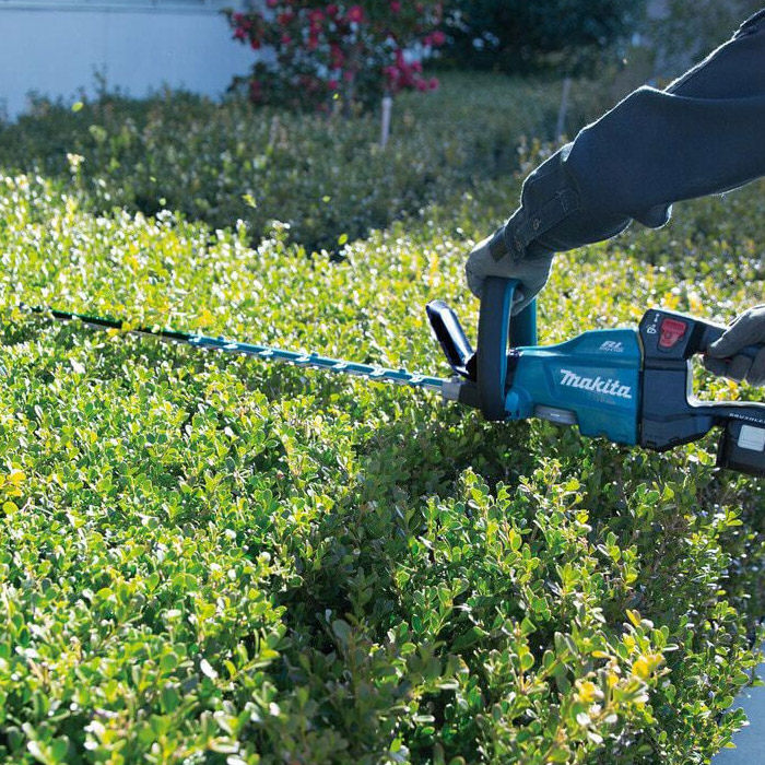 Cortasetos Inalámbrico Li-Ion de 36V, 55 cm (21-5/8"). Diseño bien balanceado y ergonómico y mango trasero giratorio de 5 posiciones para mayor comodidad durante el recorte vertical y en ángulo. Operación a dos manos; la herramienta se activa solo cuando se accionan el gatillo y el mango frontal. Caja de engranajes de alta resistencia diseñada para una durabilidad mejorada y el protector de la punta de la cuchilla protege la cuchilla del desgaste innecesario.