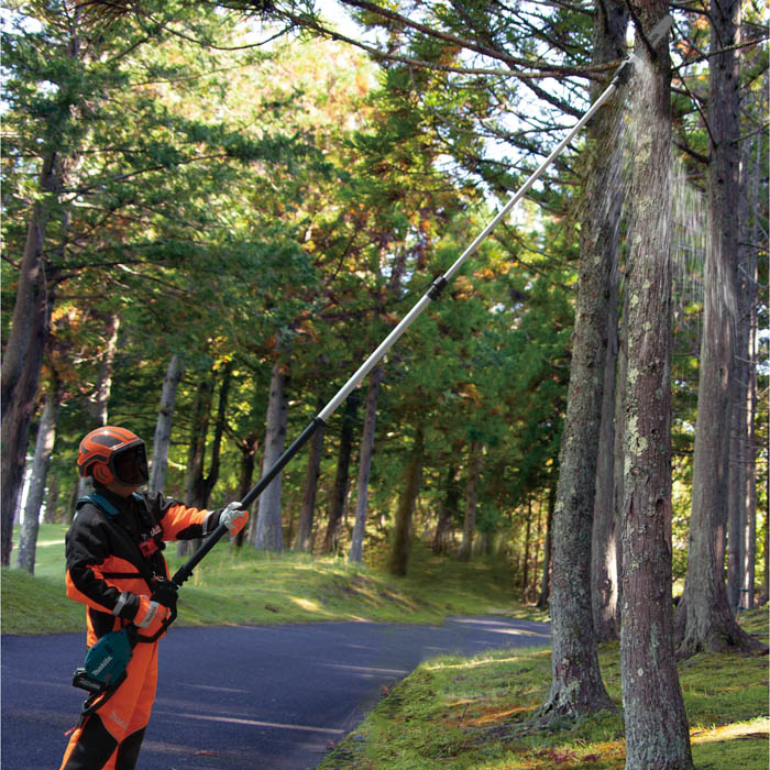 Motosierra con Vara Telescópica Inalámbrica BL AFT XGT de 40Vmax, 30 cm (12"). El motor BL de alta potencia ofrece la misma o mayor eficiencia de operación que los modelos a motor de clase 35 mL. La velocidad de la cadena es igual o mayor que la de los modelos de la competencia, permitiendo un corte cómodo. Cabezal de sierra de pértiga liviano para un fácil acceso a la posición de corte deseada y reducción de la fatiga del operador. Ideal para poda y desrame en árboles altos o áreas de difícil acceso.