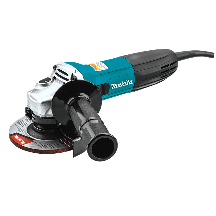 Esmeriladora Angular de 115 mm (4-1/2"), 720 W, Interruptor Deslizable Makita. Potente motor de 720 W que entrega 11,000 RPM para las aplicaciones más exigentes. Agarre tipo barril de diámetro pequeño para mayor comodidad. Los engranajes cónicos mecanizados proporcionan hasta 2 veces más vida útil que los modelos anteriores. La cubierta del disco protege al operador de la dispersión accidental de una rueda rota o de la pieza de trabajo con un movimiento mínimo de la cubierta.