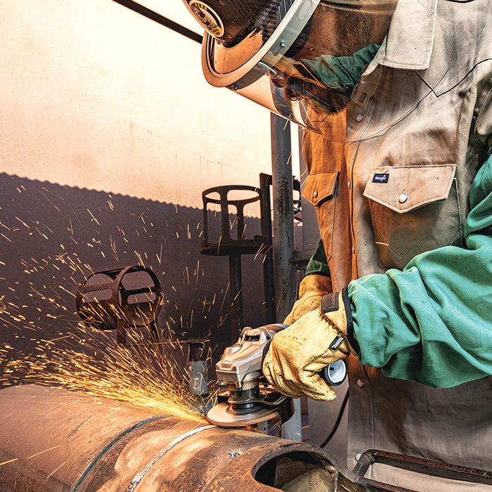 Esmeriladora Angular de 115 mm (4-1/2"), 1.900 W Makita. Consumo de energía y durabilidad mejorados, y está equipada con AFT (Active Feedback sensing Technology) para la reducción de contragolpes. Carcasa con agarre tipo barril fácil de sostener. Cubierta de disco sin herramientas con palanca estilo Deslizable. El control de velocidad Constante aplica automáticamente potencia adicional al motor para mantener la velocidad bajo carga.