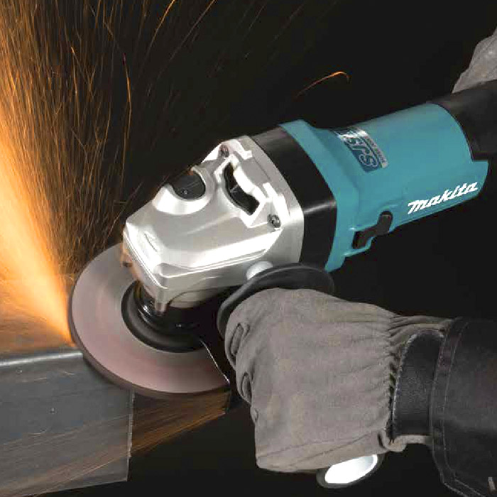 Esmeriladora Angular de 115 mm (4-1/2"), 1.900 W Makita. Consumo de energía y durabilidad mejorados, y está equipada con AFT (Active Feedback sensing Technology) para la reducción de contragolpes. Interruptor de paleta fácil de agarrar, logrado al reducir el tamaño de la porción de agarre en la parte posterior de la máquina. Cubierta de disco sin herramientas con palanca estilo Deslizable. El dial de control de velocidad variable permite al usuario ajustar la velocidad a la aplicación. El control de velocidad Constante aplica automáticamente potencia adicional al motor para mantener la velocidad bajo carga. Freno mecánico para un frenado potente.