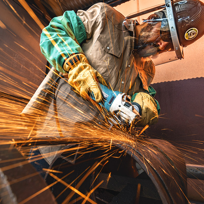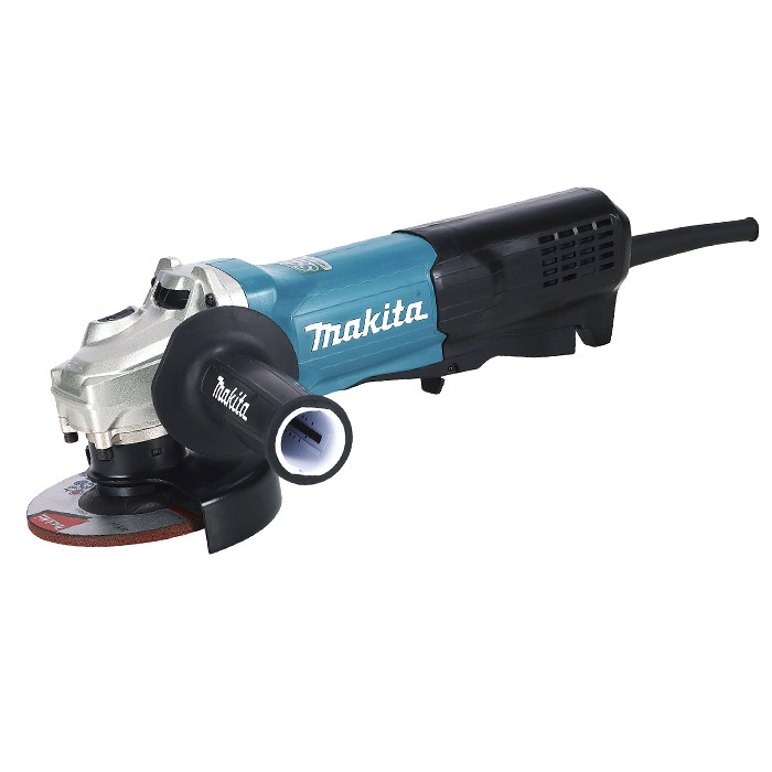 Esmeriladora Angular de 115 mm (4-1/2"), 1.900 W Makita. Consumo de energía y durabilidad mejorados, y está equipada con AFT (Active Feedback sensing Technology) para la reducción de contragolpes. Interruptor de paleta fácil de agarrar, logrado al reducir el tamaño de la porción de agarre en la parte posterior de la máquina. Cubierta de disco sin herramientas con palanca estilo Deslizable. El dial de control de velocidad variable permite al usuario ajustar la velocidad a la aplicación. El limitador de corriente Electrónico ayuda a proteger el motor de sobrecargas. Freno mecánico para un frenado potente.