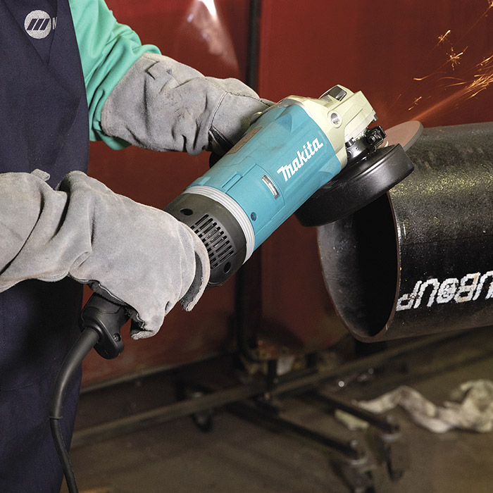 Esmeriladora Angular de 180 mm (7"), 2.700 W Makita. Diseñada para ser altamente durable y liviana. El mango lateral está posicionado más cerca del centro de rotación del disco para proporcionar una excelente maniobrabilidad y equilibrio del producto en una amplia gama de posturas de trabajo. Motor más durable para aplicaciones de trabajo pesado. La cubierta del interruptor y la esponja minimizan la entrada de partículas metálicas a los terminales del interruptor para mejorar la protección contra fugas eléctricas. La cubierta del disco protege al operador de la dispersión accidental de una rueda rota o de la pieza de trabajo con un movimiento mínimo de la cubierta.