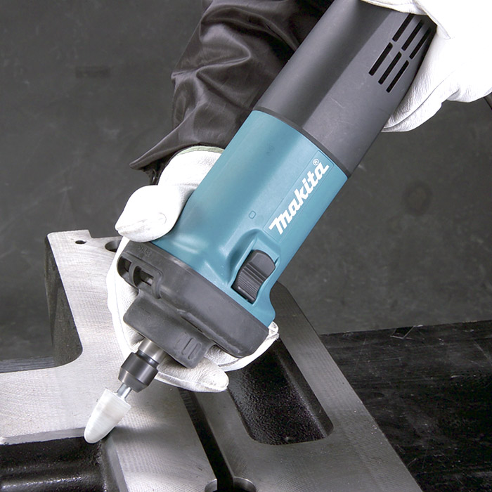 Esmeriladora Recta de 6 mm (1/4"), 400 W Makita. Cuerpo compacto con nariz corta, ideal para rectificado de precisión. Cubierta de goma antideslizante para un fácil manejo. La tuerca de boquilla de forma redonda reduce la posibilidad de daños/rayones a la pieza de trabajo. Palanca de interruptor convenientemente ubicada para operación con una sola mano. Interruptor lateral para conveniencia del operador. Potente motor de 400W que entrega 25.000 RPM para manejar las aplicaciones más desafiantes.