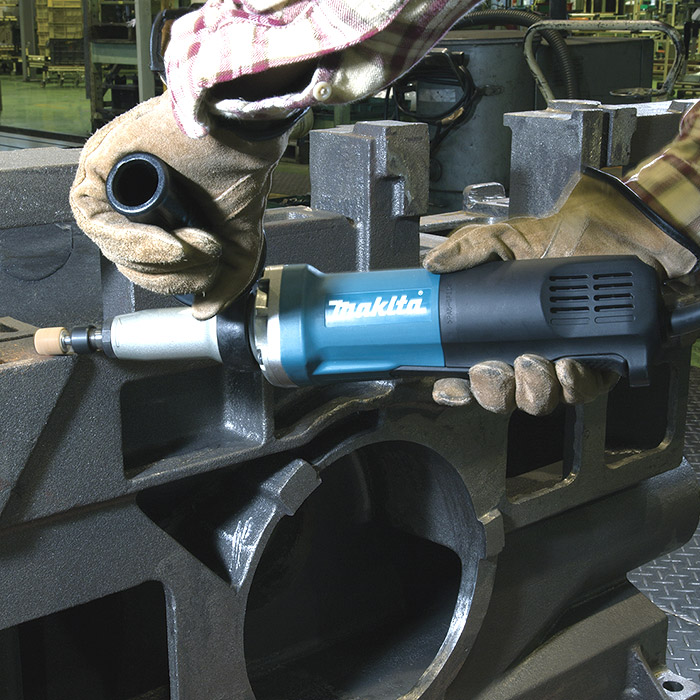 Rectificador de 8 mm (1/4"), 750 W, Potente motor de 750 W que entrega 7.000-29.000 RPM para una remoción de material más rápida. Los respiraderos de flujo de aire direccional canalizan la salida de aire lejos del usuario. El dial de control de velocidad variable permite al usuario ajustar la velocidad a la aplicación. El control de velocidad Constante mantiene la velocidad constante bajo carga pesada. El mango lateral proporciona el máximo control al operador durante la operación.