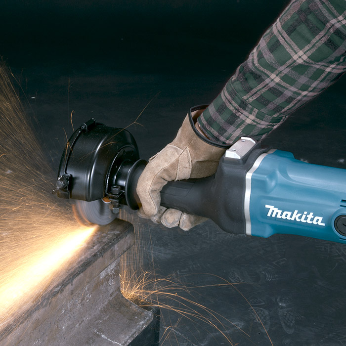 Esmeriladora Recta de 125 mm (5"), 750 W Makita. Potente motor de 750W que entrega más potencia y 5.600 RPM para aplicaciones exigentes. Remoción de la tapa protectora “sin herramientas” para cambios de disco más convenientes. El ventilador y las aspas de enfriamiento más grandes jalan más aire a través del motor para ayudar a mantener una temperatura de operación más baja. Ideal para fabricación de metales y soldadores de tuberías.