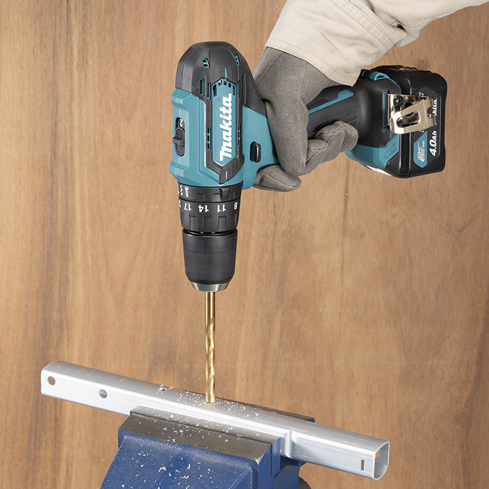Taladro-Atornillador con Percusión Inalámbrico CXT® de 12V, 3/8”, modelo HP333D, con 250 in.lbs. de Torque Máximo. Diseño compacto y ergonómico de solo 193 mm de largo con 2 velocidades variables (0-450 y 0-1.700 RPM) para una amplia gama de aplicaciones de taladrado, atornillado y taladrado con percusión.