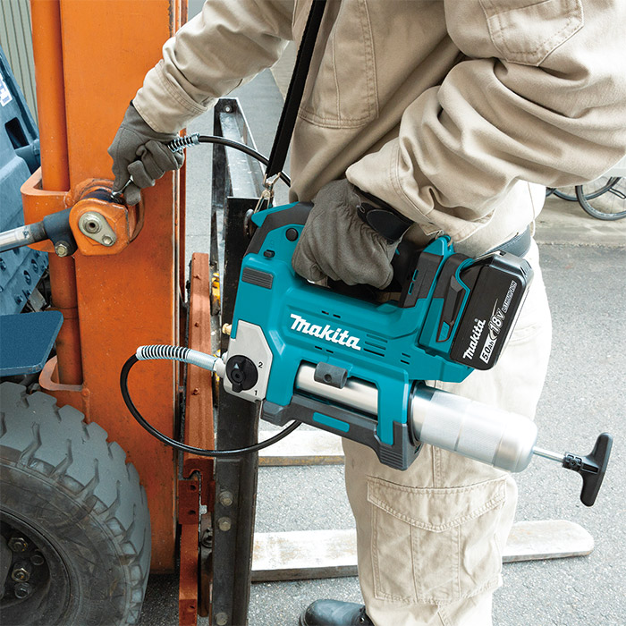 La engrasadora DGP180 de 18V LXT es una solución inalámbrica ideal para el taller o el garaje. El potente motor construido por Makita entrega hasta 10.000 PSI de presión máxima. Con un caudal máximo de 10 oz. por minuto, los usuarios pueden trabajar más rápido. Hay dos modos de velocidad, baja y automática, que se ajustan mediante un gatillo de velocidad variable. Un botón de bloqueo proporciona comodidad durante períodos de trabajo más largos.