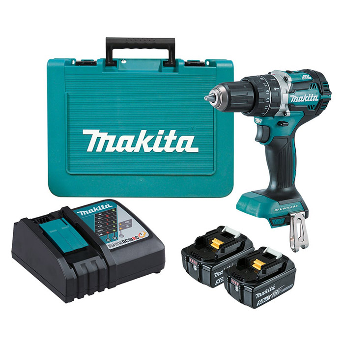 Taladro-Atornillador sin Escobillas (Brushless) de 18V LXT®. El DHP484 combina potencia y autonomía para más tareas de taladrado, atornillado y fijación en madera, metal y mampostería. El eficiente Motor BL™ sin Escobillas (Brushless) de Makita está controlado electrónicamente y diseñado para una mayor autonomía, mayor potencia y velocidad, y una vida útil más larga de la herramienta.