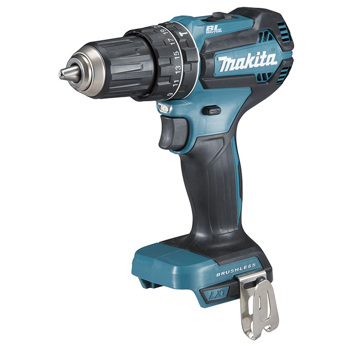 Taladro-Atornillador sin Escobillas (Brushless) de 18V LXT®. El DHP485 combina potencia y autonomía para más tareas de taladrado, atornillado y fijación en madera, metal y mampostería. El eficiente Motor BL™ sin Escobillas (Brushless) de Makita está controlado electrónicamente y diseñado para una mayor autonomía, mayor potencia y velocidad, y una vida útil más larga de la herramienta.