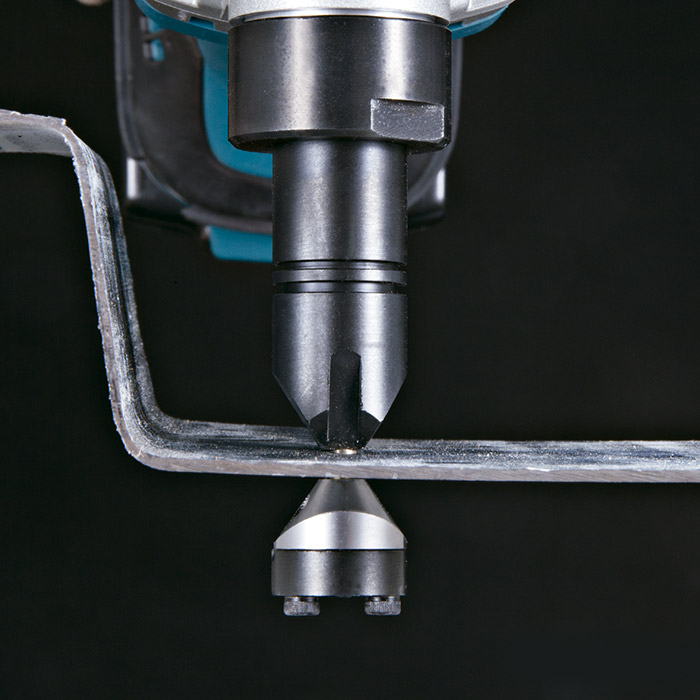 La Roedora Inalámbrica de 1.6 mm (16 Ga) y 18V LXT Li-Ion de Makita, ideal para cortar chapas metálicas para techos de hasta calibre 16, entrega hasta 1.900 CPM para un corte más rápido y suave. El porta-matriz gira 360° para satisfacer las demandas de la dirección de corte con un radio de corte: borde interior 45 mm (1-3/4"); exterior 50 mm (2"). Interruptor deslizante con bloqueo para operación continua y medidor de espesor incorporado para mayor comodidad. Cuchilla común con el modelo JN1601.