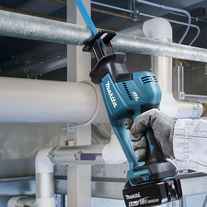 La Sierra Sable Inalámbrica de 18V LXT BL de Makita. Se ha logrado una mayor potencia mediante el uso del motor BL. El mango en forma de bucle minimiza la posibilidad de lesiones causadas por el impulso de la mano del usuario, que ocurre al final del proceso de corte y que a veces puede hacer que la mano golpee la pieza de trabajo o los dispositivos periféricos. El motor BL elimina las escobillas de carbón, permitiendo que el motor BL funcione más frío y de manera más eficiente para una vida útil más larga. La luz de trabajo LED con funciones de pre y post-iluminación ilumina el área de corte. Tecnología de Protección Extrema (XPT) para uso en aplicaciones al aire libre o entornos hostiles; se mejora la protección contra el polvo y el goteo de agua. Botón de bloqueo del gatillo para minimizar que se apriete accidentalmente. El circuito de protección de la batería protege contra sobrecarga, sobredescarga y sobrecalentamiento.