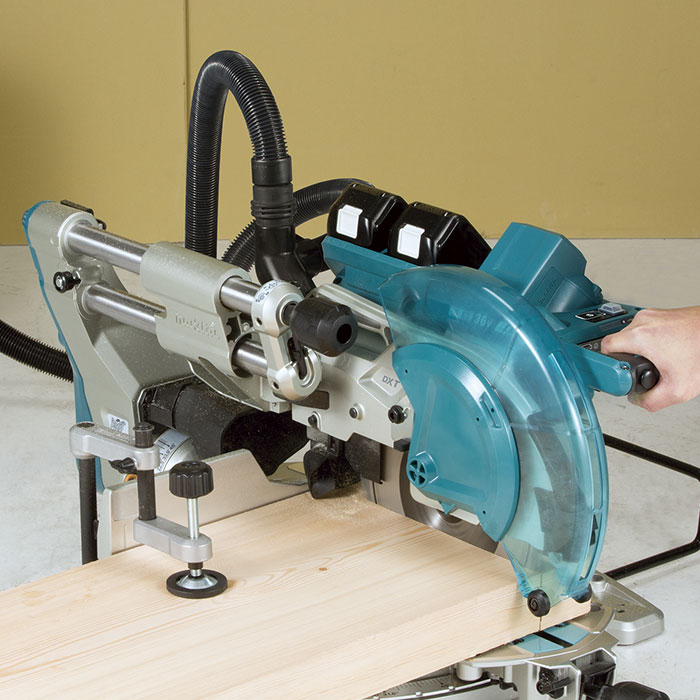 Ingletadora Telescópica Compuesta Inalámbrica de 260 mm (10-1/4") y 18V X2 (36V) LXT BL AWS ADT de Makita, con Láser. El Sistema Inalámbrico de Arranque Automático (AWS) se conecta a aspiradoras compatibles con Bluetooth. Dos baterías de 18V LXT Li-Ion entregan la potencia y autonomía para las exigencias del trabajo con cable sin abandonar la plataforma de 18V LXT. La Tecnología de Torque Automático (ADT) ajusta la velocidad y el torque durante la operación para un rendimiento óptimo. Tasa de extracción de polvo aumentada para un entorno de trabajo más limpio. Bloqueo de deslizamiento para fijar el movimiento del carro. Innovador sistema de caja de engranajes y guarda de transmisión directa diseñado para una mayor capacidad de corte vertical.