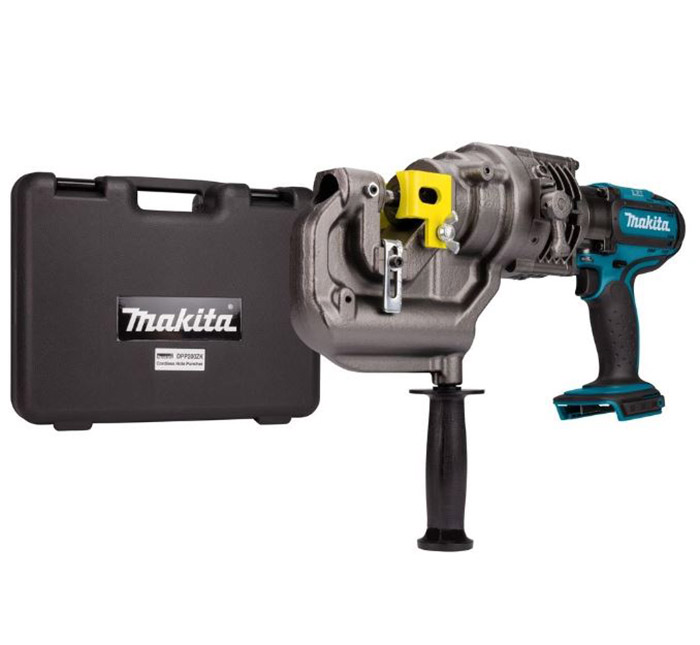 La Perforadora Inalámbrica de 18V LXT Li-Ion de Makita perfora agujeros de hasta 20 mm a través de Placas de Acero de hasta 8 mm de espesor. Después de completar un ciclo de perforación, la presión hidráulica retira automáticamente el punzón de la pieza de trabajo y lo devuelve a la posición inicial para permitir una perforación continua y eficiente de agujeros de diferentes tipos, redondos o alargados. Entrega un volumen de trabajo con una carga de batería completa de 110 agujeros (aprox.).
