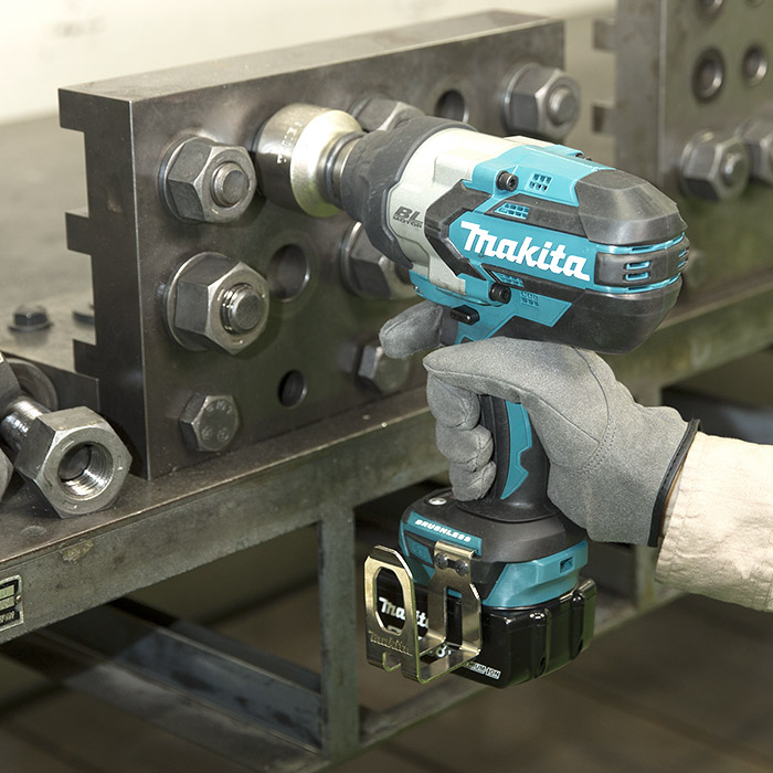Llave de Impacto de 3 Velocidades Inalámbrica sin Escobillas (Brushless) BL de 18V LXT de 3/4" (19 mm) y 1,250 N·m (920 ft.lbs.). Diseño compacto y ligero gracias al motor BL. La longitud total se ha acortado extremadamente. La selección electrónica de potencia de impacto de 3 etapas reduce los aprietes incorrectos. La carcasa del martillo está firmemente sujeta con cuatro pernos. Luz de trabajo LED doble con funciones de pre y post-iluminación. El freno eléctrico detiene la rotación suave pero rápidamente, permitiendo al usuario reanudar la operación rápidamente. La producción de energía es más eficiente que en un motor con escobillas debido a que no hay pérdida por fricción causada por las escobillas, lo que permite reducir el amperaje para una menor producción de calor y un mayor volumen de trabajo con una sola carga completa de batería.