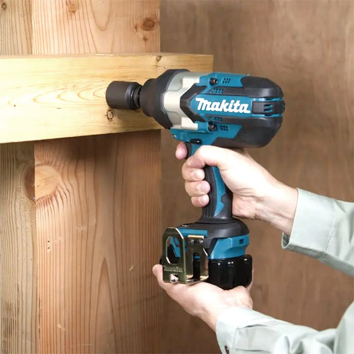 Llave de Impacto de 3 Velocidades Inalámbrica sin Escobillas (Brushless) BL de 18V LXT de 1/2" (12.7 mm) y 1,200 N·m (890 ft.lbs.). La longitud total se ha acortado extremadamente. La selección electrónica de potencia de impacto de 3 etapas reduce los aprietes incorrectos. La carcasa del martillo está firmemente sujeta con cuatro pernos. El mejor mango ergonómico posible se adapta perfectamente a su mano. El freno eléctrico detiene la rotación suave pero rápidamente, permitiendo al usuario reanudar la operación rápidamente. Control de velocidad variable por gatillo. Gancho para la comodidad del operador.