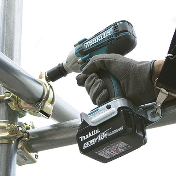 La Llave de Impacto Inalámbrica de 1/2" (12.7 mm) y 190 N·m (140 ft.lbs.) de 18V LXT Li-Ion. La correa para el hombro mejora la libertad de movimiento del operador durante el trabajo en altura. Ligera para reducir la fatiga del operador. La luz LED incorporada con pre-iluminación ilumina el área de trabajo. El mango de diseño ergonómico con empuñadura suave proporciona mayor comodidad en el trabajo. Control de velocidad variable por gatillo para una fijación precisa en una amplia variedad de aplicaciones. Equipada con un circuito de protección de la batería para proteger contra sobrecarga, sobredescarga y sobrecalentamiento.