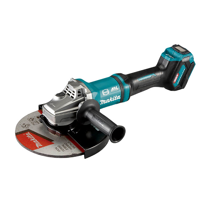 Esmeriladora Angular Inalámbrica BL AWS AFT XGT de 40Vmax, 230 mm (9") Makita. Liviana para una mayor operabilidad y Mayor potencia bajo carga pesada. Mango ergonómico de fácil agarre con empuñadura suave que proporciona un agarre seguro y cómodo.