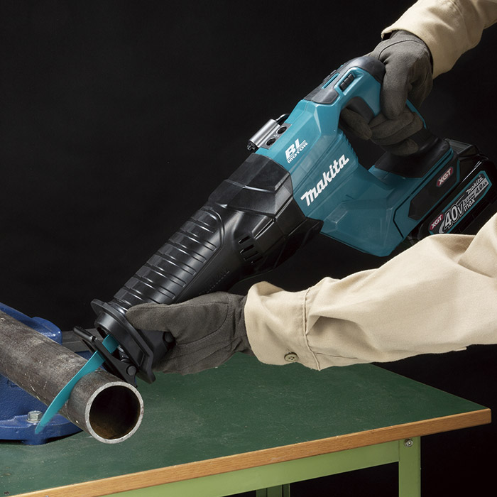 La Sierra Sable Reciproca XGT® de 40V max ofrece una velocidad de corte más rápida para aplicaciones de corte y demolición. El motor sin escobillas de 2 velocidades variables construido por Makita entrega 0-2.300 (baja) y 0-3.000 (alta) carreras por minuto. Está equipada con características de eficiencia para un corte más rápido. La larga carrera de 1-1/4” aumenta la eficiencia de corte, y el diseño refinado del mecanismo de biela minimiza la desviación de la hoja y reduce la vibración. Las características de conveniencia incluyen un gatillo grande de velocidad variable para dos dedos, freno eléctrico, luz L.E.D. incorporada y un cambio de hoja sin herramientas para una instalación y remoción más rápidas de la hoja. Mango de diseño ergonómico para aplicaciones de corte difíciles, como por encima de la cabeza.
