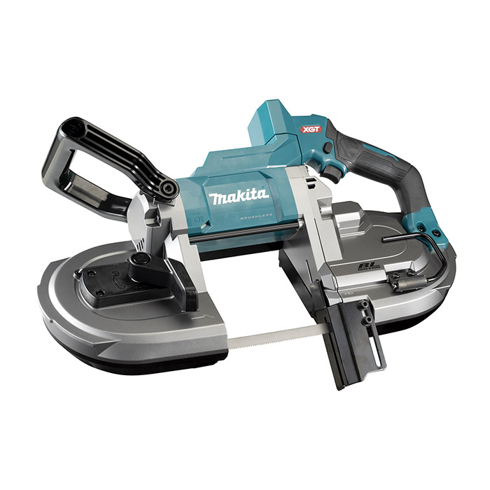Sierra de Banda Portátil Inalámbrica BL XGT de 40Vmax con Velocidad Variable Makita. Eficiencia de corte similar o superior a la de los modelos de la competencia, lograda por el motor BL y una mayor velocidad de la hoja. El control de velocidad constante minimiza la reducción en la velocidad de la hoja para proporcionar un corte estable. Control de velocidad variable por dial; se puede seleccionar una velocidad de corte óptima para adaptarse a la aplicación. Freno eléctrico para máxima productividad. La Tecnología de Protección Extrema (XPT) está diseñada para proporcionar una mayor resistencia al polvo y al agua en condiciones adversas del lugar de trabajo. Fácil ajuste del recorrido de la hoja simplemente girando un tornillo. Luz de trabajo LED doble con funciones de pre-iluminación y post-iluminación. La función anti-reinicio está diseñada para minimizar el arranque del motor cuando se inserta la batería con el interruptor bloqueado. La función de bloqueo previene el arranque accidental. El circuito de protección de la batería protege contra sobrecarga, sobredescarga y sobrecalentamiento.