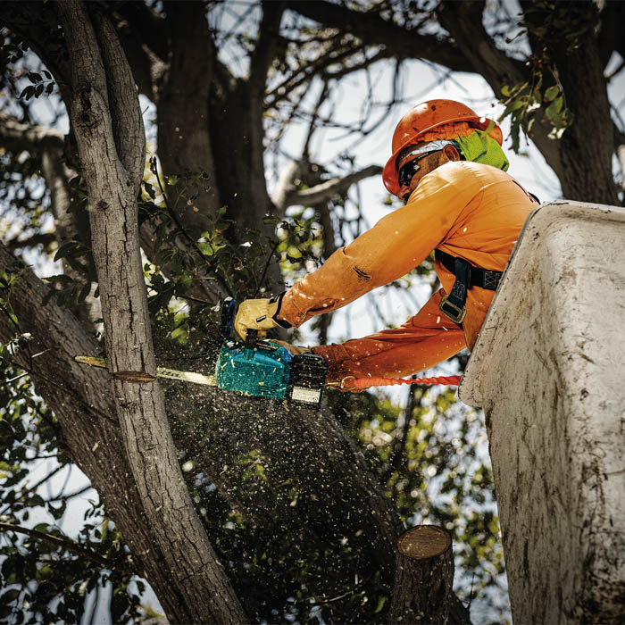 Motosierra Inalámbrica BL XGT de 40Vmax, 35 cm (14"). Liviana para reducir la fatiga del operador. Interruptor de encendido principal con función de apagado automático para ahorrar batería y evitar el arranque involuntario. Gran puerto de llenado de aceite con ventana de visualización que permite al operador agregar y verificar fácilmente el nivel de aceite de la barra. Velocidad de la cadena: Máx 24.8 m/s. Lubricación automática de la cadena ajustable con gran depósito de aceite.