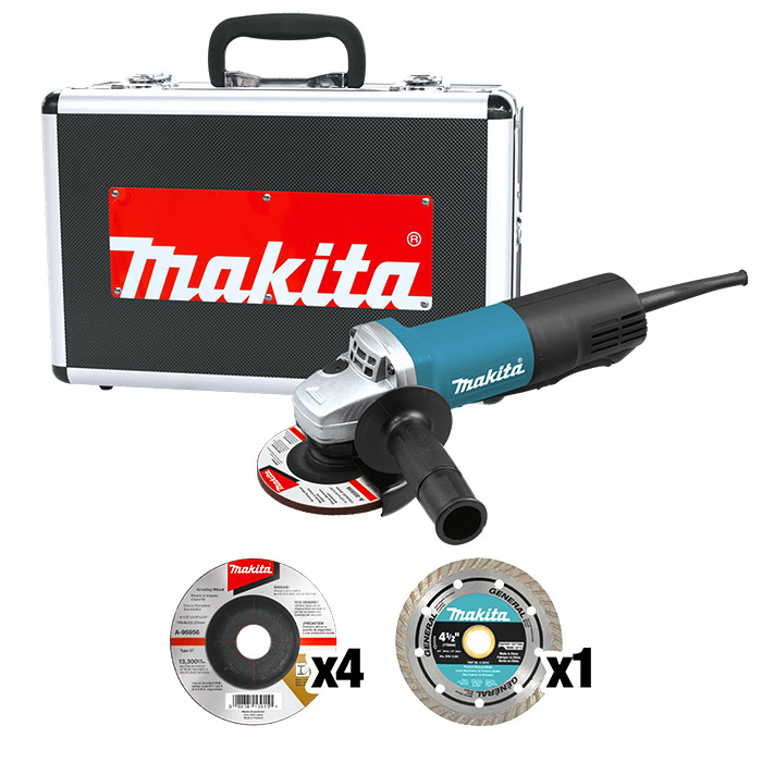 La Esmeriladora Angular de 4-1/2" de Makita cuenta con un motor de 3.8 Amp que proporciona 11.000 RPM de potencia de amolado compacta y está diseñada para trabajos de alta producción. Cuenta con un interruptor de paleta grande para una fácil operación para diestros o zurdos. La 9557HPGX1 presenta un diseño compacto con un cuerpo de diámetro reducido y peso ligero para mayor comodidad