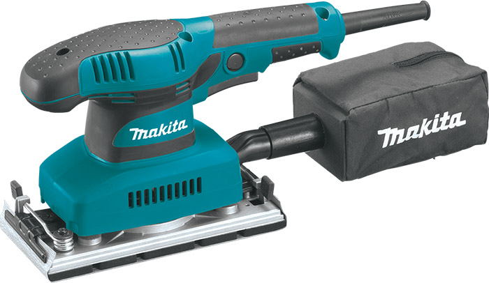 La Lijadora Orbital de 1/3 de Hoja de Makita (modelo BO3710) combina un rendimiento rápido y suave con una empuñadura de palma ergonómica y recubierta de goma, y características de fácil uso. La BO3710 es ideal para carpinteros y ebanistas que requieren una lijadora de primera clase. La construcción de precisión con rodamientos de bolas está diseñada para reducir la vibración y el ruido. El eficiente sistema de recolección de polvo a través de la base ayuda a proporcionar un entorno de trabajo más limpio, mientras que la bolsa de tela para polvo tiene una boca extra ancha para una eliminación más rápida.