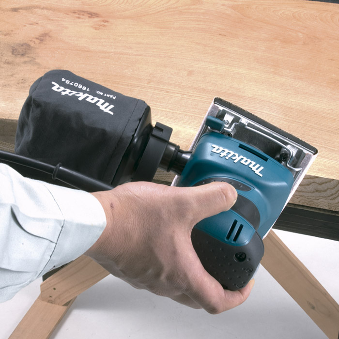 La Lijadora Orbital de 1/4 de Hoja y 200 W de Makita entrega hasta 14.000 OPM para un lijado de acabado rápido y suave. Potente motor, baja vibración, bajo ruido. Empuñadura ergonómica con superficie cubierta de elastómero antideslizante y eficiente sistema de recolección de polvo a través de la base con bolsa para un entorno de trabajo más limpio.